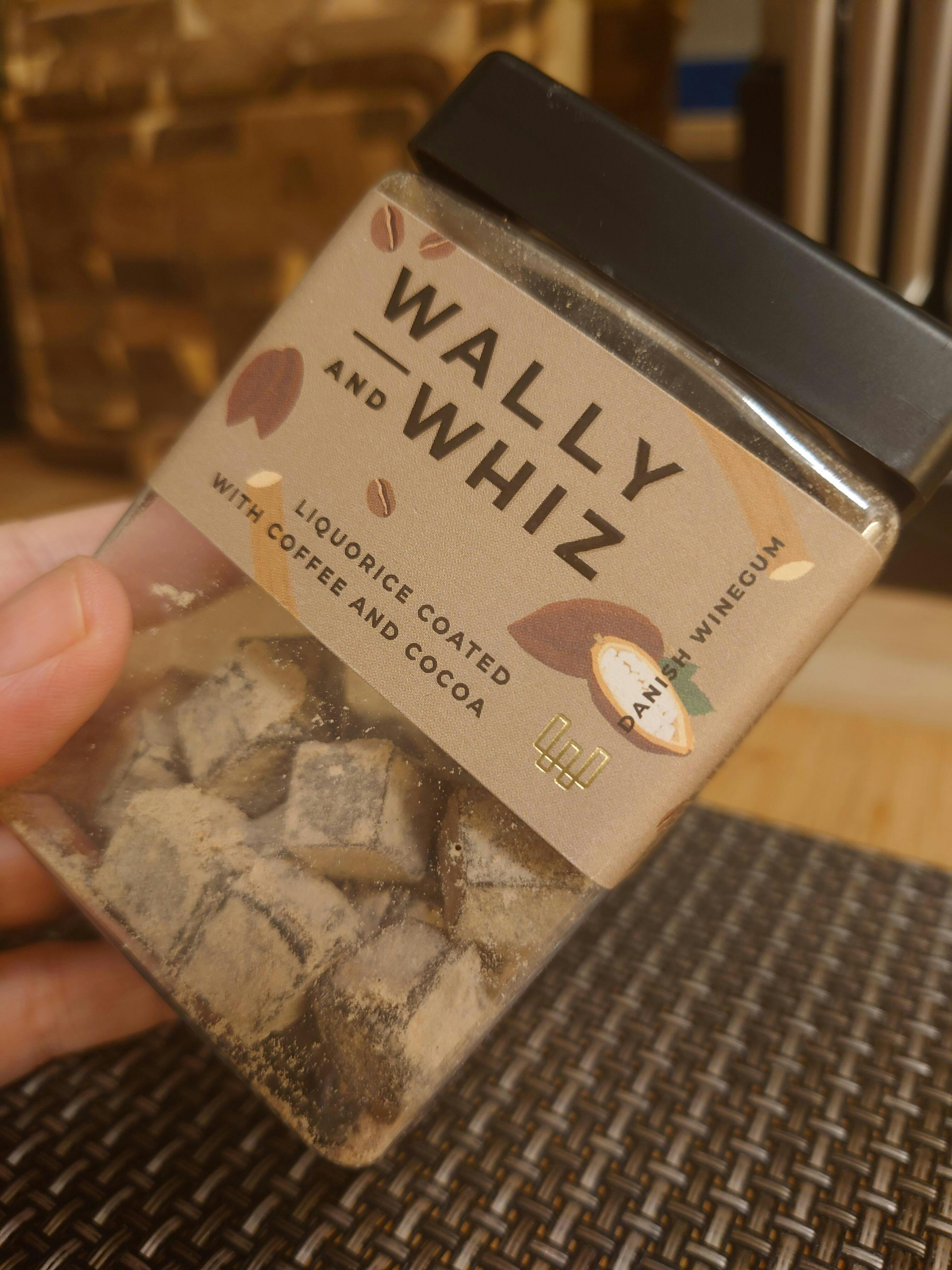 Liquorice winegum coated with coffee and cocoa powder